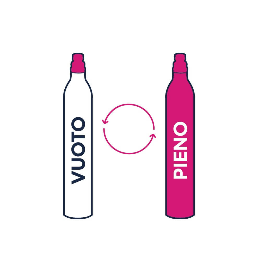 Il gas che utilizzate per rendere frizzante la vostra acqua è l’elemento più importante perché lo assumete insieme all’acqua. La CO2 prodotta è certificata ad uso alimentare, prodotta in Italia, ed il riempimento delle bombole segue i più rigorosi standard di qualità e sicurezza. Il cilindro è in alluminio.